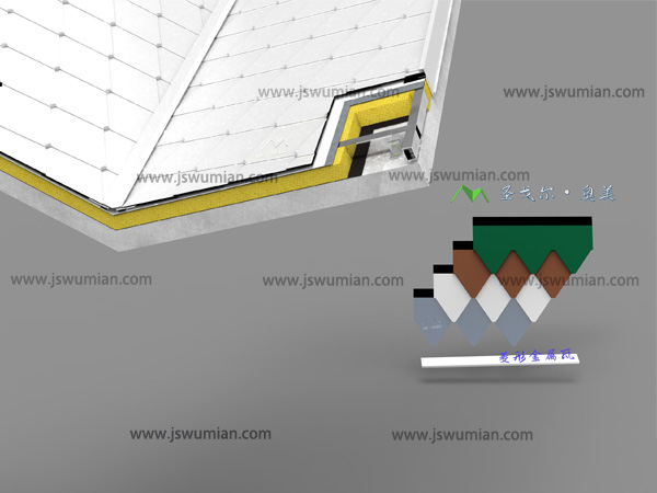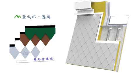 ● 金屬特有的質(zhì)感與色彩:金屬板表面采用氟碳輥涂工藝,色彩絢麗、逼真,花色豐富,耐候性優(yōu)越,歷久彌新,30年不褪色,不老化。