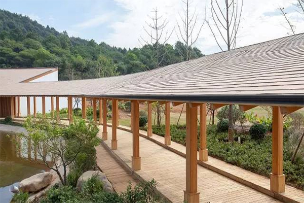 對(duì)于材料的巧妙使用,設(shè)計(jì)師結(jié)合建筑舒展的尺度和蜿蜒的形象,選用金屬質(zhì)感的屋瓦塑造出最柔和的建筑屋頂,整個(gè)建筑更加體現(xiàn)出傳統(tǒng)工藝的營造,人們可以在建筑內(nèi)吟詩賞月,組織音樂會(huì),在古韻風(fēng)景之下同樣表達(dá)出現(xiàn)代開放的特點(diǎn)。隨著科技的發(fā)展,如今越來越多的材料涌現(xiàn),世界木材交易大會(huì)展示中心的屋頂瓦就選用了全新的材料,絲毫感受不到材料與建筑結(jié)構(gòu)有違和感,而且曲面屋頂回音好、流線感強(qiáng)、沒有壓抑感、有動(dòng)感、很舒暢,瓦爾托金屬復(fù)合瓦更像來自自然的設(shè)計(jì)元素。