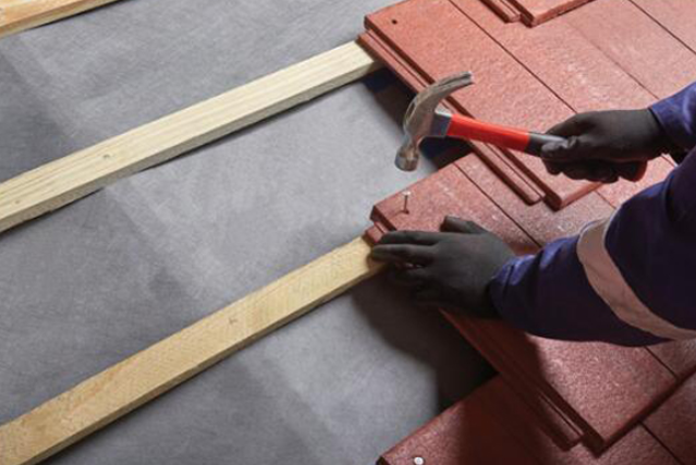 2、為確保掛彩石金屬瓦瓦條在一個平面上,安裝彩石金屬瓦掛瓦條時,可在掛瓦條下加大小不同的木楔子,以調(diào)整掛瓦條表面平整;
