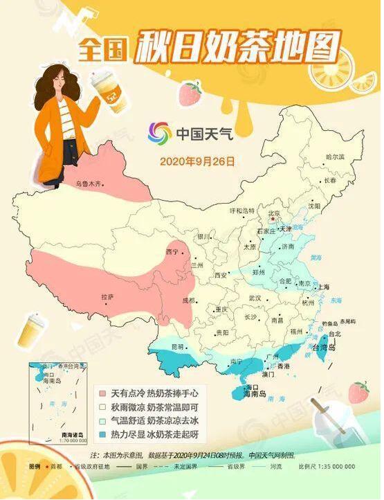 小編以為只是大家比較愛熱鬧,給自己的生活增添的樂趣,誰知24號(hào)環(huán)球網(wǎng)轉(zhuǎn)載了中國(guó)天氣網(wǎng)的文章。內(nèi)容是:秋天有一種暖,叫捧在手心的奶茶。伴隨冷空氣頻繁我國(guó)入秋進(jìn)程加快,部分地區(qū)氣溫持續(xù)走低,讓人總想喝點(diǎn)熱熱的暖和一下。這時(shí)候,你需要一杯煮好的奶茶。秋天的第一杯奶茶你喝了嗎?快來查收中國(guó)天氣網(wǎng)的全國(guó)秋日奶茶地圖,看看你那里適合喝什么溫度的?